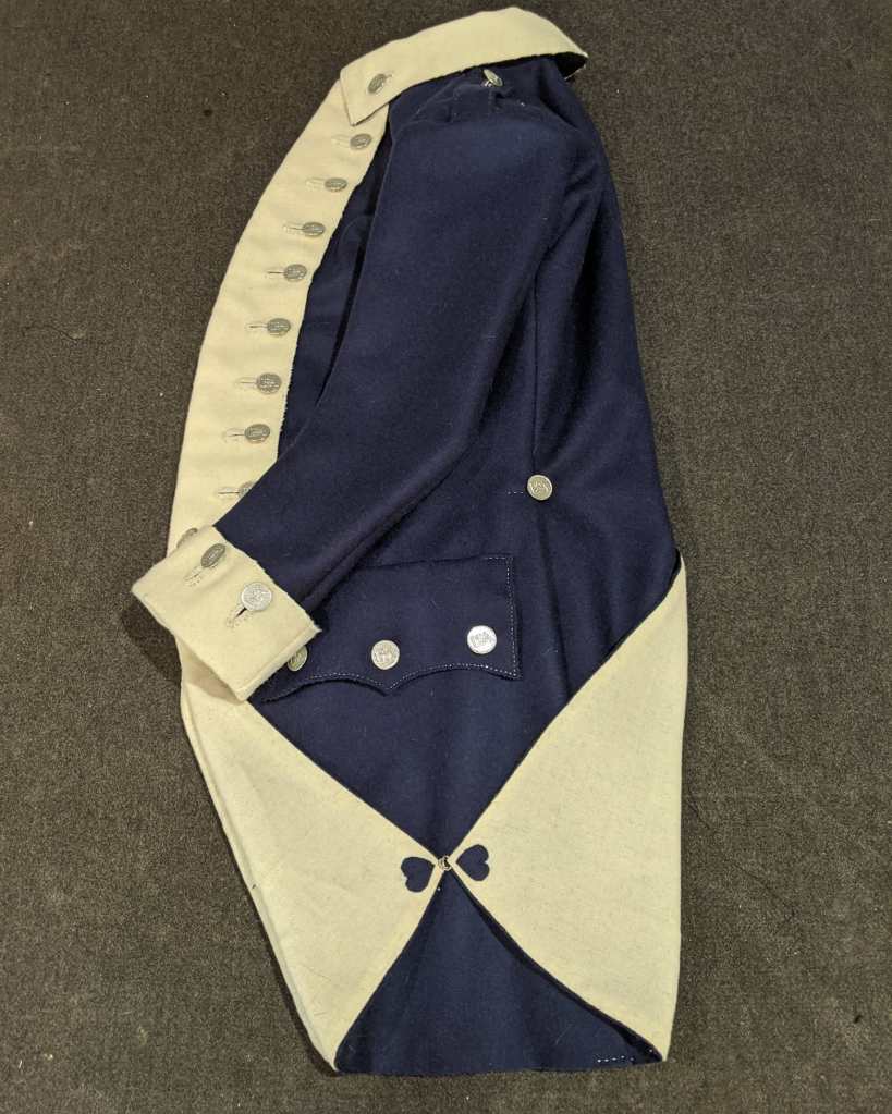 Below are some examples of the tailoring work I’ve done for clients. I make a diverse range of clothing from the second half of the 18th-Century, specialising in garments from the American War of Independence. My work is made using period techniques and materials, and are authentic recreations of historical garments. I work with re-enacting organisations, museums, historical societies, and individuals. I am a one man operation and by appointment only. My pricing includes labour, taxes, & fabric provided by the shop, but excludes fabric from outside sources:
