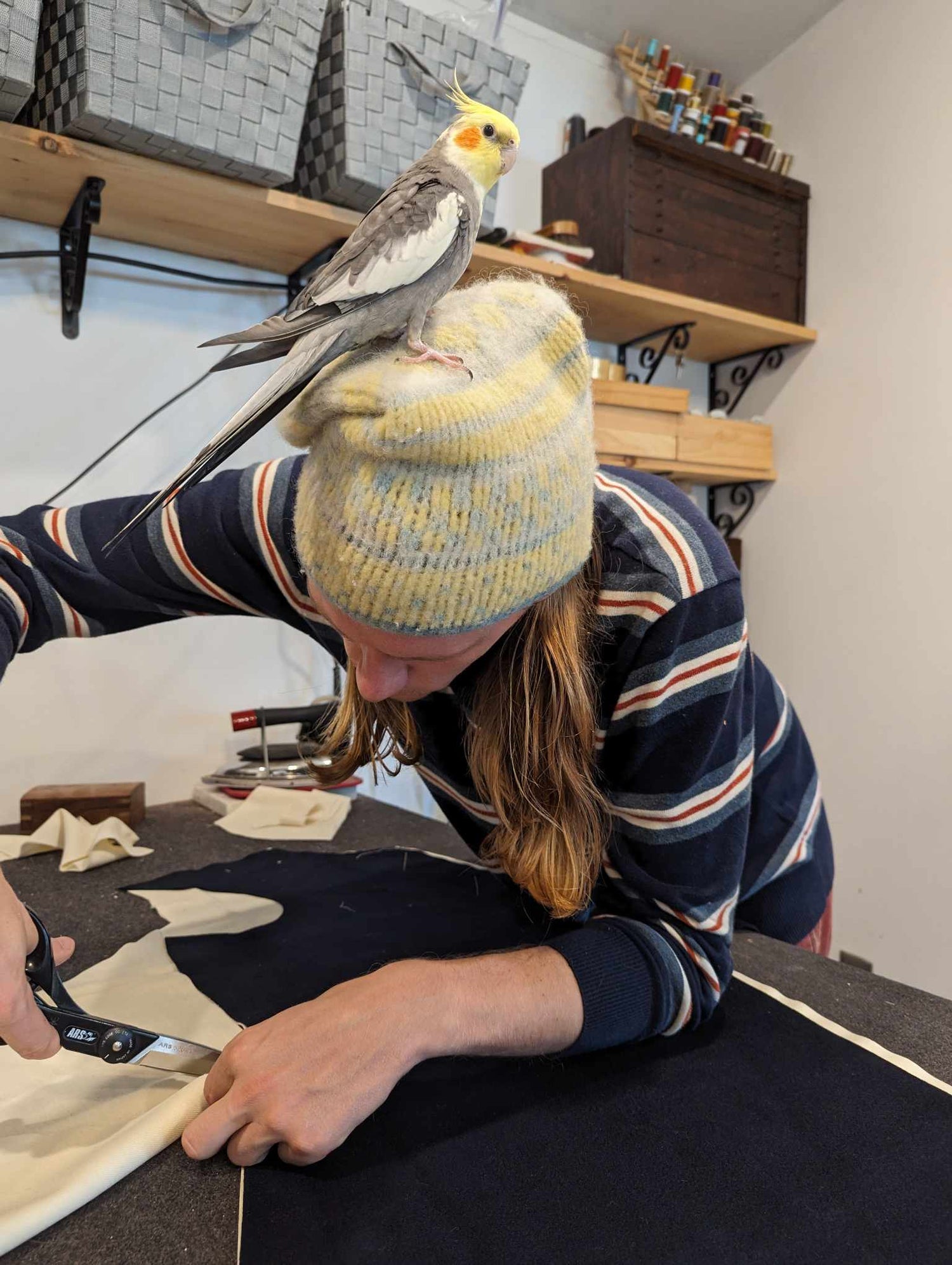 I work out of my home in Enfield Connecticut, with my parrot Lightbulb. I sew most of the day, every day. I am always keeping up on the latest research and knowledge of what was being worn in the AWI so that I can make sure that my clients will have the most correct garment possible. I keep my prices reasonable and fair so that our hobby is accessible to all. I enjoy bringing the material culture of our past to life, as well as keeping historical trades alive.