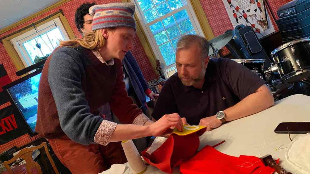 Students come with clothes already made, and we work to fit them a little better. Breeches, coats, waistcoasts, gaiters always need a little tuck.